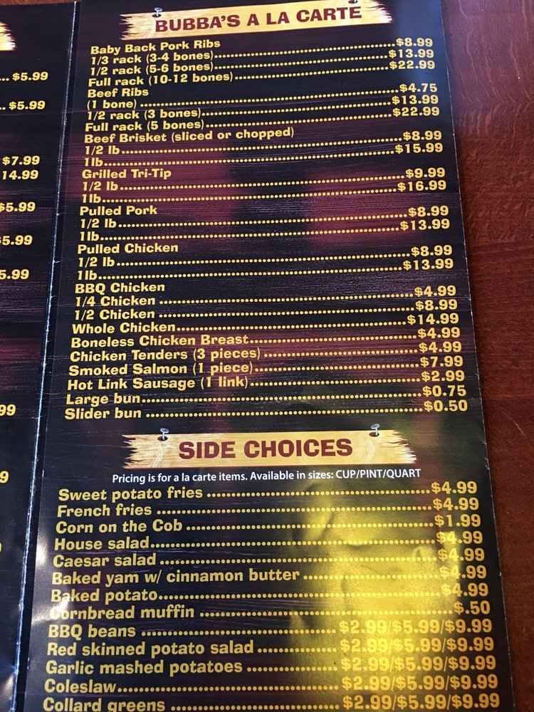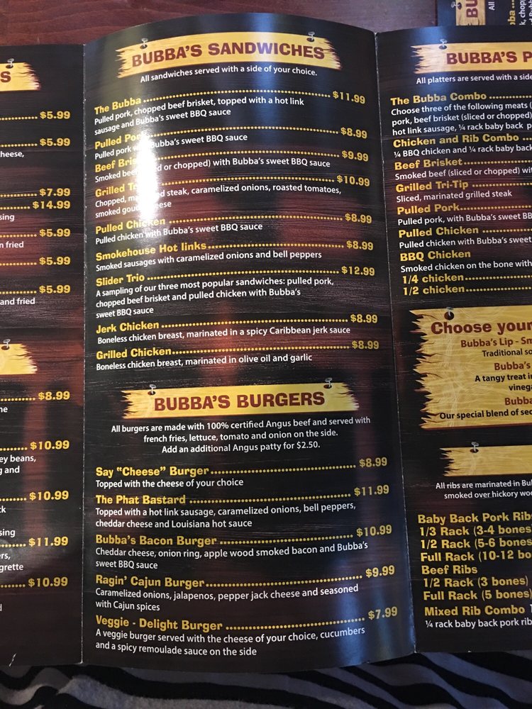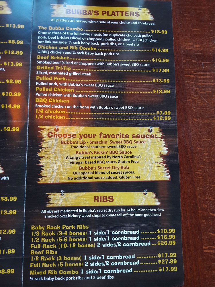 Wrap up your meal with a slice of Pecan Pie or comforting Bread Pudding. With a friendly owner committed to quality, every bite at Bubba's reflects a passion for BBQ that keeps guests coming back for more!